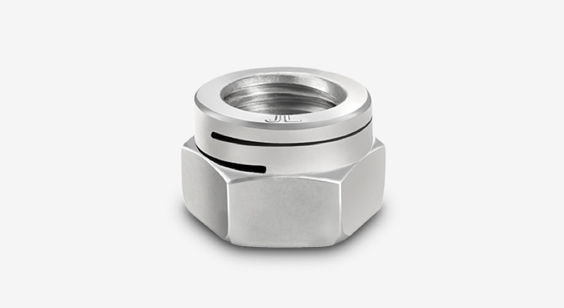 Dual-slotted, all-metal, self-locking hex nut. It’s has impressive characteristics: extremely reliable, consistent prevailing torque, and no galling. The dual-locking slots function independently of bolt tension. The ESL is a true single piece all metal design.