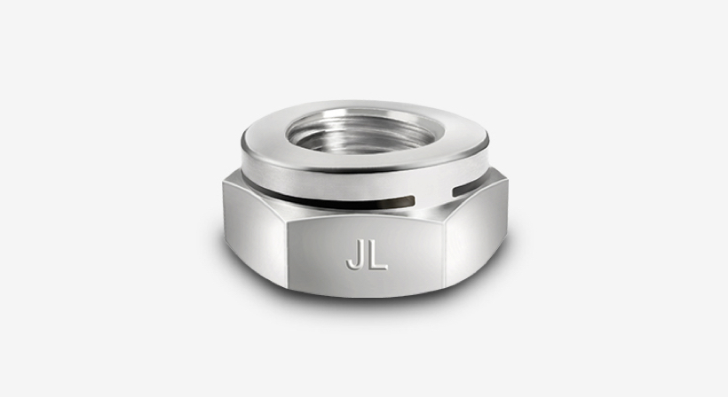 Single-slotted, extra low height, locking jam nut.
